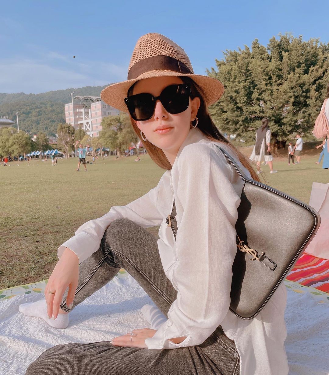 ▲Tiffany背全黑OLYMPIA包耍辣晒腿摆拍一波。(图 / 翻摄IG@tiffanyyoungofficial)