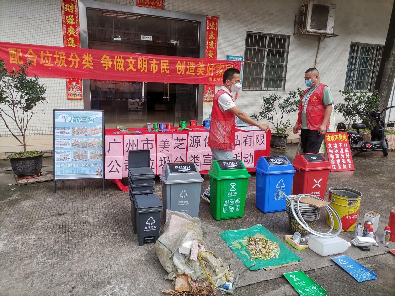 广州市白云区太和镇谢家庄村在2022年4月24日,走进地区所属某企业进行垃圾分类宣传。组织和参与人员有:谢家庄村企业和卫生部门工作人员,所属地区某企业的部分员工
