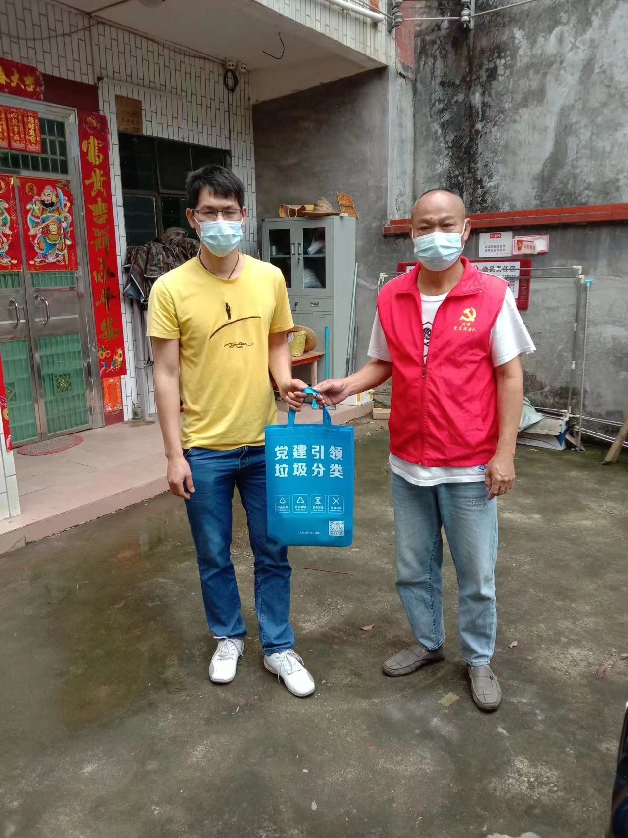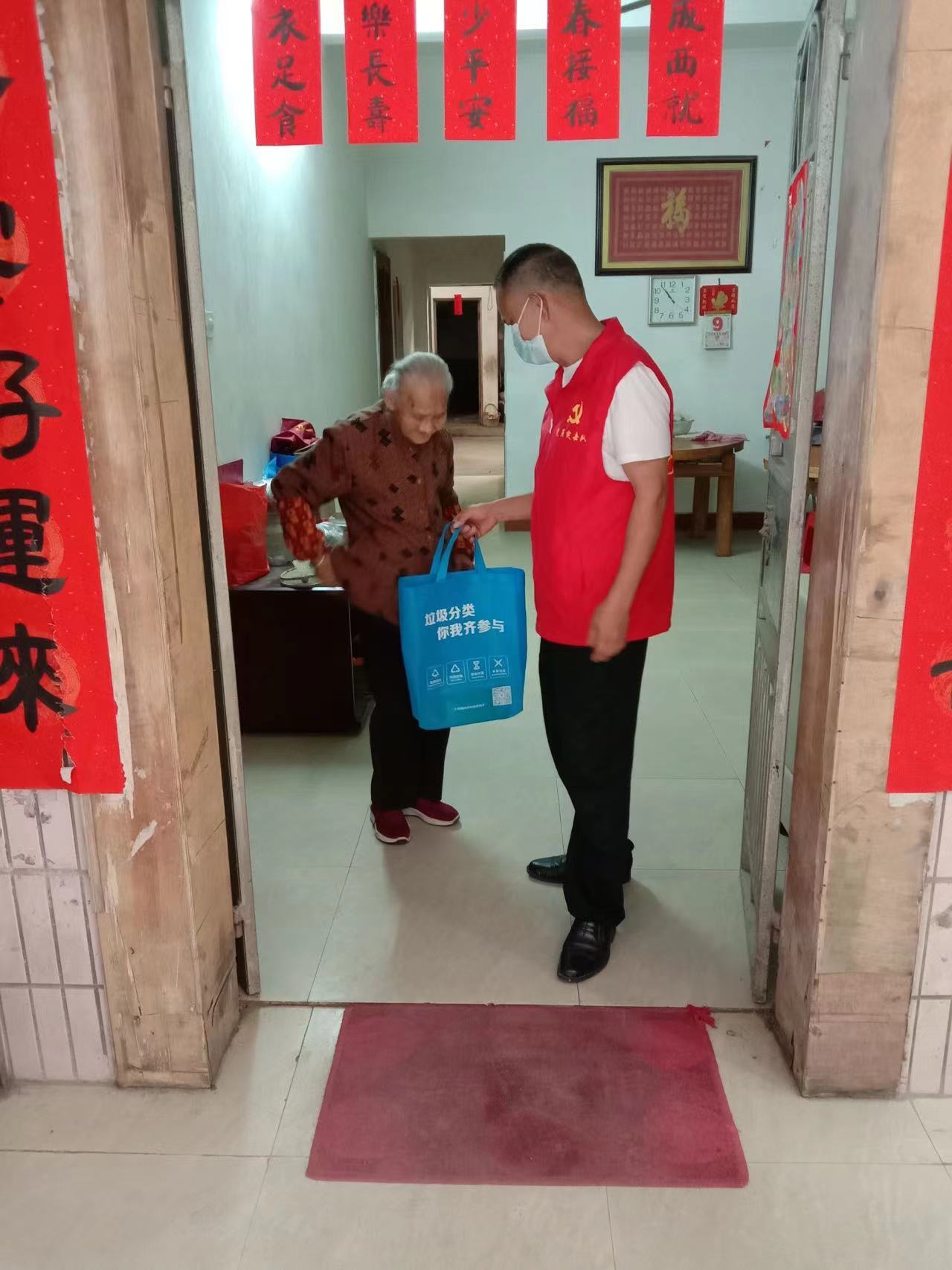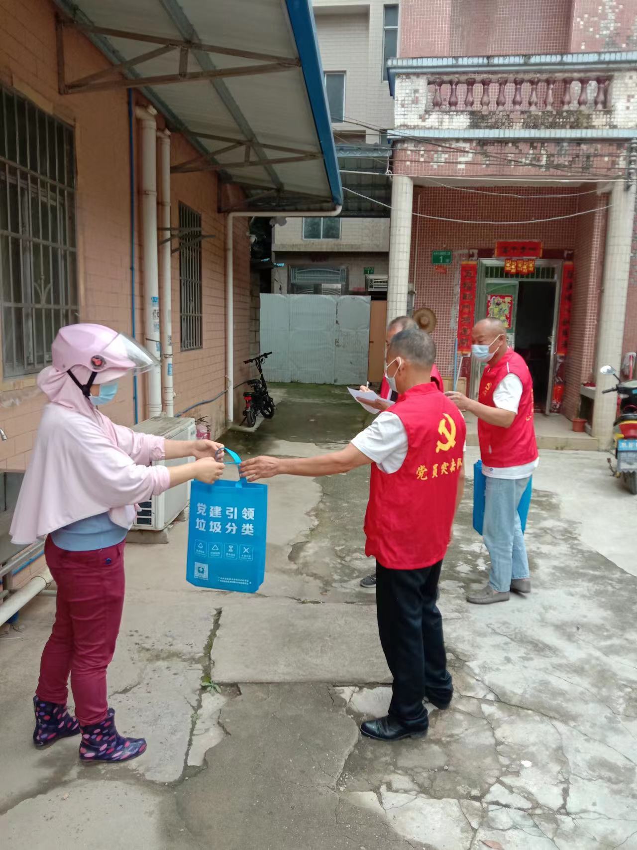 活动中,党员、志愿者们通过挨家挨户上门分发垃圾分类宣传资料和给村民讲解垃圾分类的好处来开展垃圾分类宣传工作。工作人员还用地道的客家话重点向村民传达了习主席对垃圾分类工作作出的重要指示,从而让村民意识到生活垃圾分类的重要性。