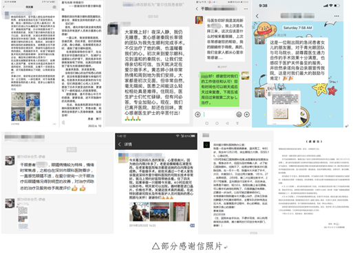质朴而真诚的表达着他们对于主治医护团队的感谢,对医院服务品质的认可,也是对医院专业的点赞,更是彰显出了有爱与和谐的医患情谊。