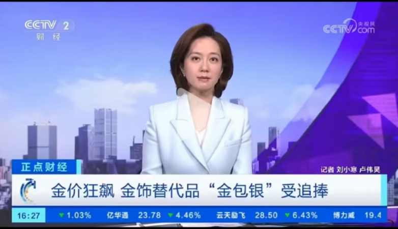 近期,国际金价再创新高,国内首饰金每克已经突破八百元大关,这让不少刚需消费者望而却步。中国黄金协会披露数据显示,今年上半年黄金首饰销量同比下降百分之二十六点六八。与此同时,作为黄金饰品平价替代的金包银开始弯道超车,销售火爆。那么,什么是金包银,为何销量能够一路攀升?