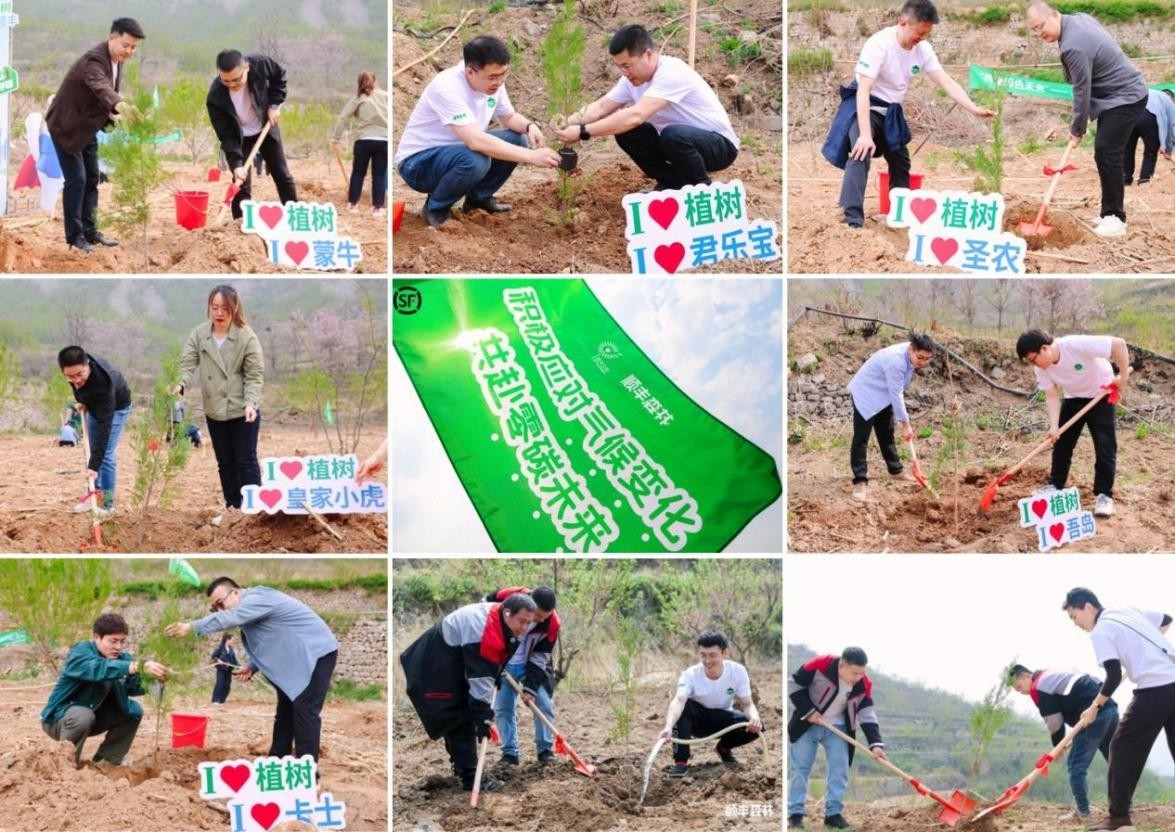 来自顺丰冷运、顺丰公益基金会、中国绿色碳汇基金会、顺丰速运河北区的快递员与志愿者,以及君乐宝、蒙牛、皇家小虎、圣农、卡士、吾岛等客户代表、媒体与达人,在井陉县林业局支持下共同植树,以实际行动践行绿色发展理念,为太行山生态屏障再添新绿。